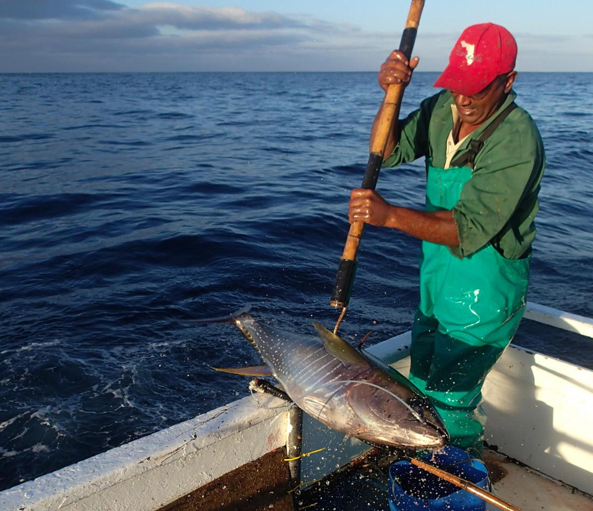All the catch from this fishery is caught using the traditional handline technique, wherein each fisher uses a single line with a hook attached, to catch one fish at a time. The size of the boats range from 4 m to 12 m, and subsequently have a varied crew size (between one and six fishers). The fishery is very selective, which means it catches only yellowfin tuna. Non-target species (also known as bycatch) are animals that the fishery doesn’t want to catch, such as dolphins, turtles or sharks. The use of a single hook and line per fisher means that there is very little bycatch, and because fishing takes place at the surface of the ocean, there is virtually no negative impact on different marine habitats. All tuna are stored on ice, onboard the vessel before being transported back to shore.
