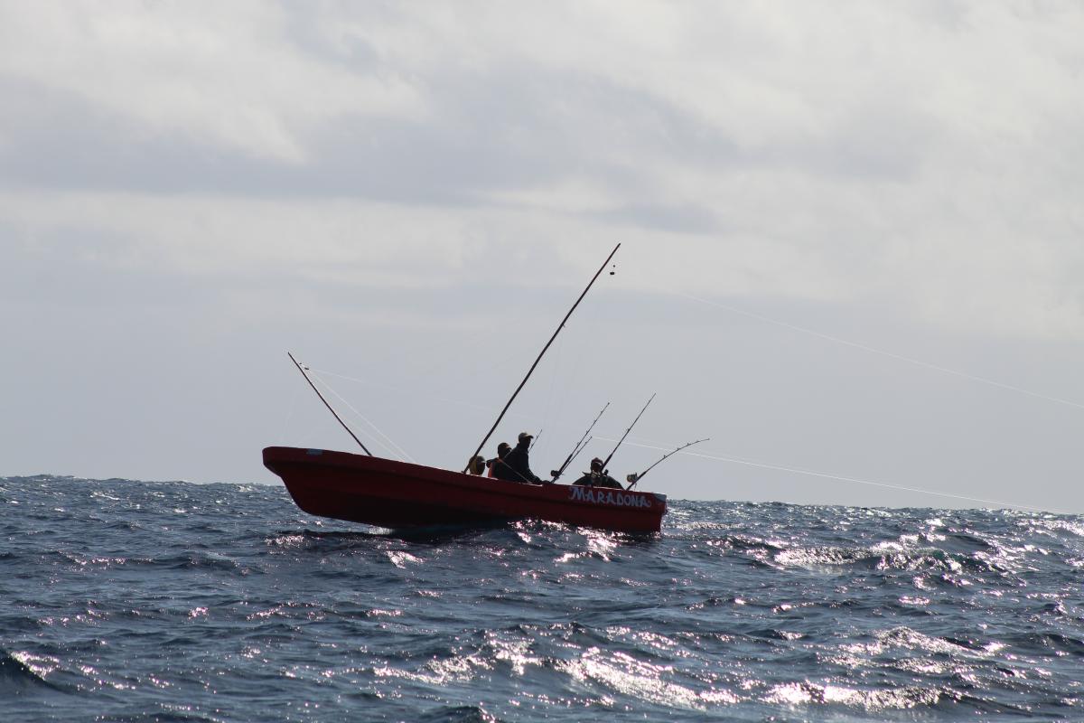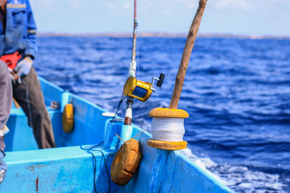 Most small-scale fishers targeting tuna in Kenya operate from small fibreglass vessels while using one-by-one troll fishing techniques. These methods typically catch fast growing, surface level fish species, such as yellowfin and skipjack tuna. Unlike larger-scale troll fishing that uses artificial lures on barbless hooks at the back of the boat, this much smaller-scale fishery uses barbed lines. This assists them in catching particularly tricky fish and helps to prevent fish from escaping: more important at the smaller catch volumes seen in this fishery. These lines are pulled at a slow speed through the water from varying lengths of line that are attached to rod and reel gear, rather than the back of the boat as seen in larger scale trolling. The disturbance of the surface waters caused by the dragging, resembles the movements that small fish make and attracts the tuna to the lure. When a tuna is caught, the fisher hauls in the line and removes the tuna, returning that same hook and line to the water.